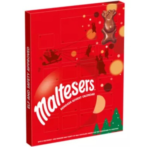 Maltesers Reindeer Chocolate Christmas Advent Calendar 108 g — Весёлый адвент-календарь с 23 маленькими порциями молочного шоколада Maltesers и мини-«оленьком» Maltesers для сюрприза на 24-е число. За каждым окошком — лёгкий хрустящий центр и нежный молочный шоколад — идеальный выбор для праздничного отсчёта