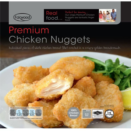 Foxwood Premium Chicken Nuggets - это отдельные кусочки из цельной куриной грудки, покрытые хрустящей золотистой панировкой. Каждый кусочек сохраняет сочность и нежную текстуру курицы, создавая вкусное и удобное блюдо для обеда, ужина или перекуса.